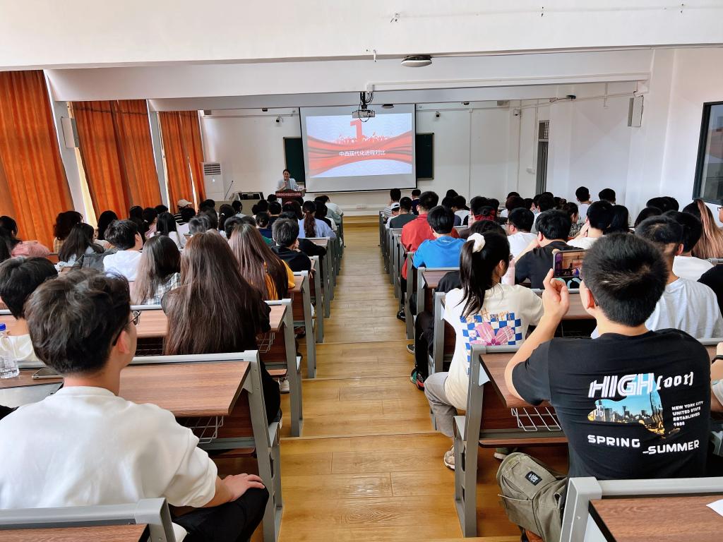 洪宗华从中西现代化进程对比,中国式现代化的中国特色,中国式现代化新征程上新青年的使命担当等三个方面进行专题授课,主题鲜明、论述深刻,既有理论高度,又契合学生实际。洪宗华鼓励广大青年学子要勇于承担薪火相传的责任,用青春践行使命担当;把“人民至上”镌刻在心里,把“为民服务”落实在行动上。