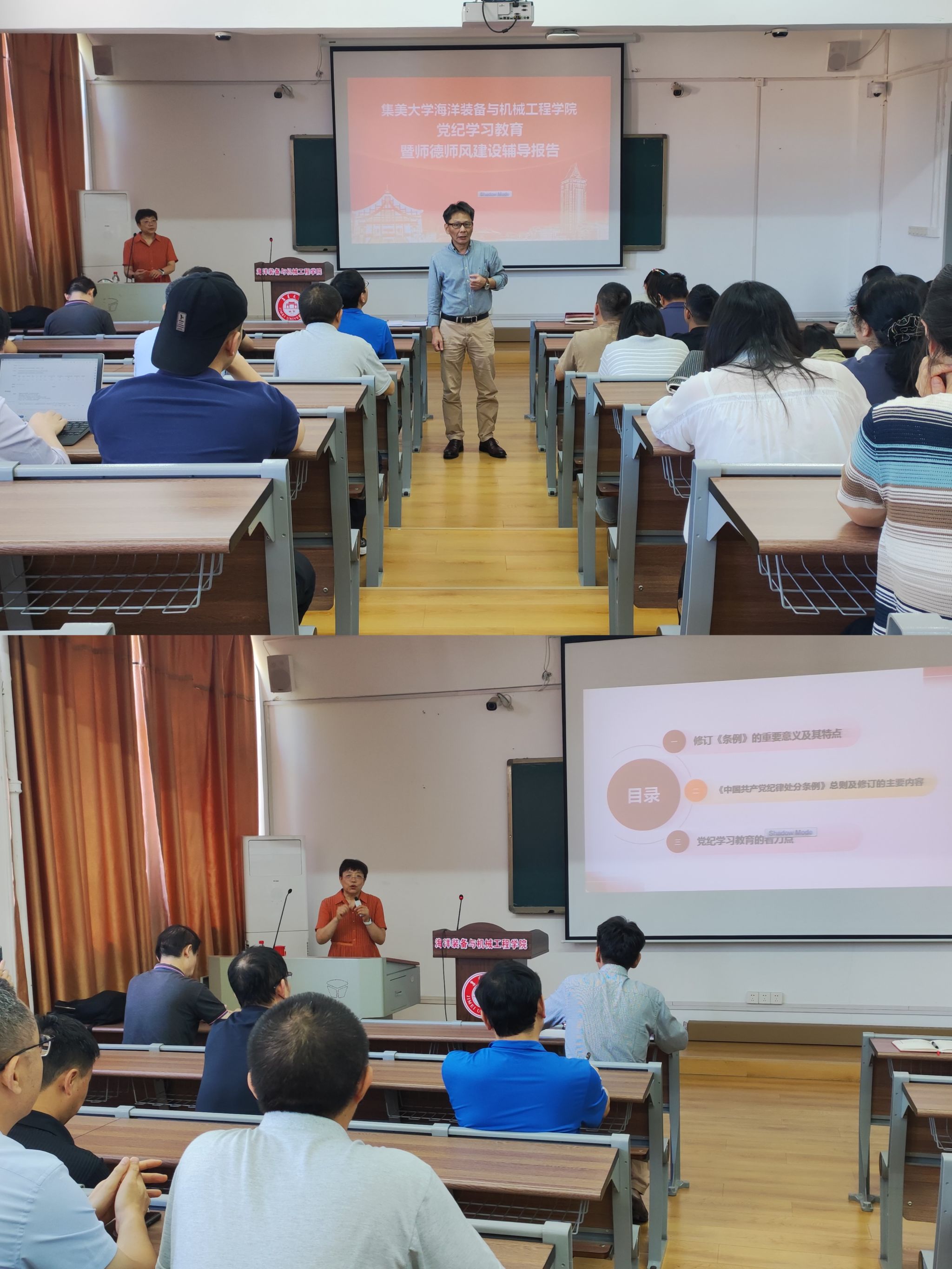 为深入学习贯彻习近平总书记关于党纪学习教育的重要讲话和重要指示精神,落实学校党委有关党纪学习教育的部署要求,5月29日,海洋装备与机械工程学院举行党纪学习教育暨师德师风建设辅导报告会,邀请马克思主义学院李晋玲教授作学习党纪学习教育专题报告。报告由学院党委书记吴连星主持,学院全体教职工参会。