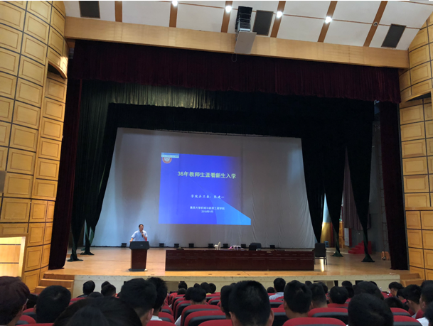 9月26日下午2:30,由机械与能源工程学院党委主办的【党员讲堂】第二十四讲暨2018年新生入学教育系列专题讲座在古龙大礼堂举行,学院关工委张建一教授为我院2018级学生做了一场题为"36年教学生涯看新生入学"的报告会。院党委副书记张志新出席了本次报告会。