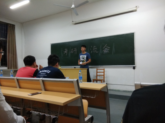交流会中,学长们首先向在座同学做了个性的自我介绍,让同学们对他们有了初步了解。并一一给学弟们讲述自己的考研历程。对于如何考研,学长分别从专业、英语、政治三方面分析。专业复习上,要多找资料;英语方面,重在背单词,练习;政治方面,选择正确的资料。现场提问环节中,同学们积极踊跃,争先恐后的提出心中疑问。师兄师姐采取各个击破的原则,有针对性的解决同学们的问题。 整个交流会现场激情洋溢,同学们精神饱满。此次交流会在热烈的交流氛围中走向了尾声!
