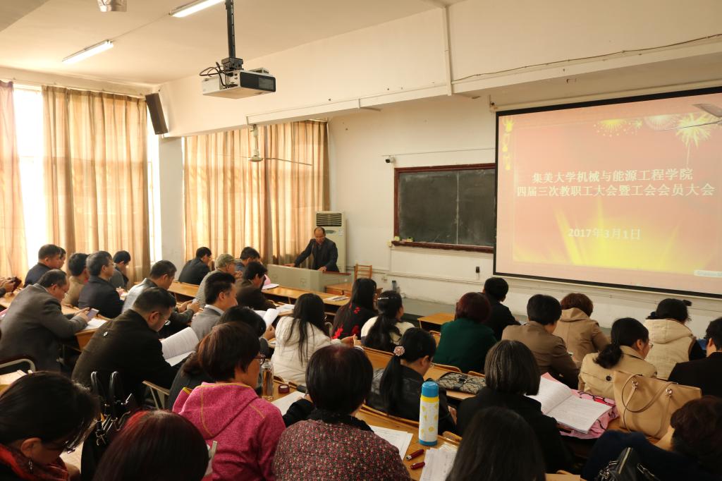 3月1日下午,机械与能源工程学院在大唐楼212隆重召开了学院四届三次教职工大会暨工会会员大会,全院教职工和工会会员参加会议。