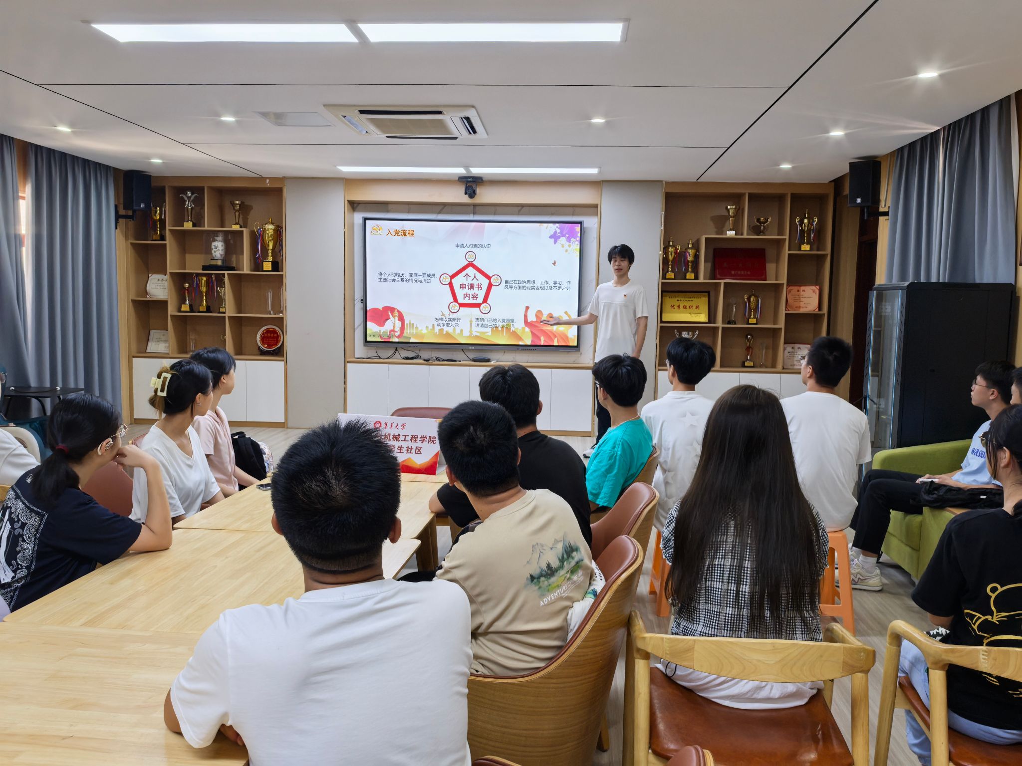 为引导2025级新生端正入党动机、坚定理想信念、提高思想觉悟,9月18日,海洋装备与机械工程学院在福东楼 “一站式”学生社区组织开展“第一堂思政课”,40余名新生代表到现场聆听。
