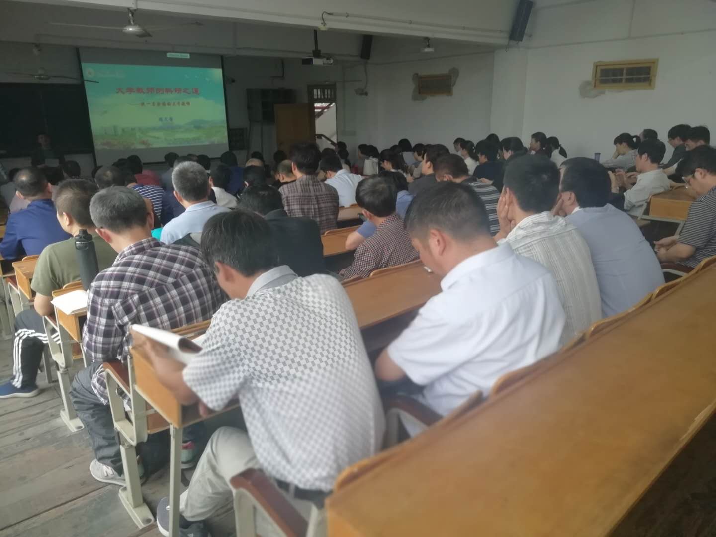 首先,陈教授指出,根据国家战略对人才需求的要求,老师必须不断提高自我,发展自我,并就教育发展存在的问题及对怎样做一名合格的大学教师做了详细的评述;其次教授为老师们解释了科学研究的涵义,并强调要培养出杰出的人才,必须重视科技创新。最后,陈教授分享了在科研项目的申请和科研成果的申报中容易出现的问题,并作了针对性地讲解。
