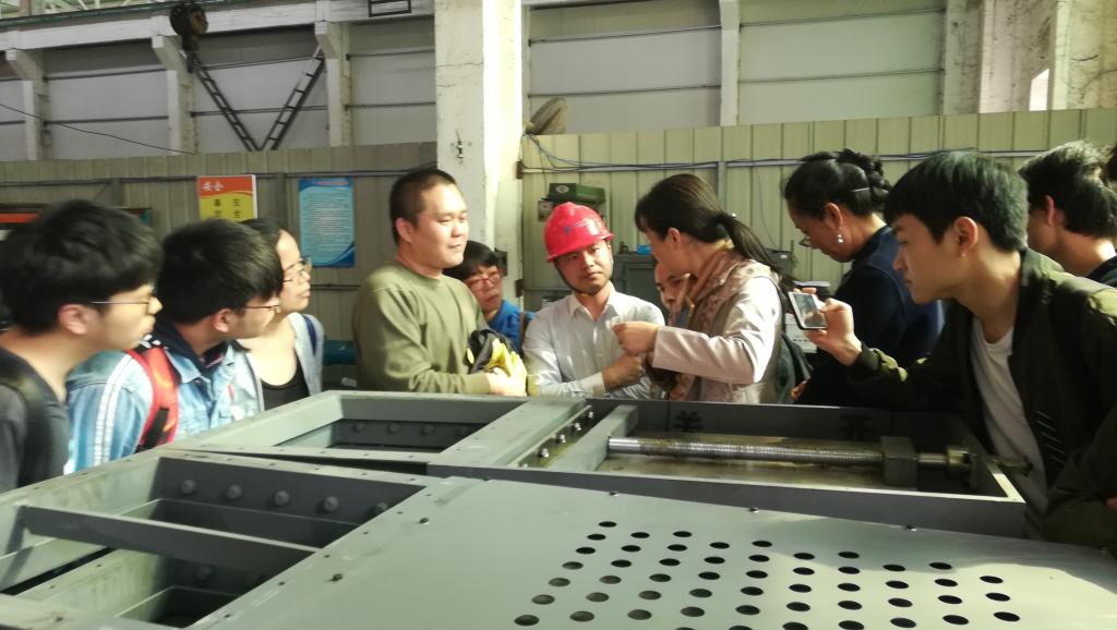 广大师生们在调研前对自己的参赛题目进行了认真梳理,并带着问题前往实地。师生们分两组在龙净环保技术人员带领下参观了赛题的加工工艺,生产过程。并在现场和技术人员针对自己在设计过程中的问题进行了交流。