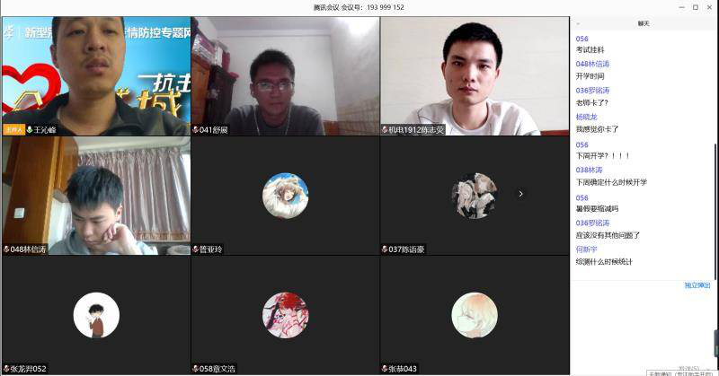 通过“云”班会,学院再次向学生传达了疫情防控期间学校的各项要求,给学生尤其是湖北籍学生送去了关心问候,教育引导学生科学认知疫情、科学防范疫情,按要求开展在线学习,合理规划学习生活,坚定理想信念,主动担当作为,增强战“疫”必胜信心;辅导员和班主任还针对学生普遍关注的疫情防控期间学业、就业、心理等问题给予了细心的解答与疏导;针对疫情防控期间学生面临的学业困难问题,给予了针对性的回应和帮扶。