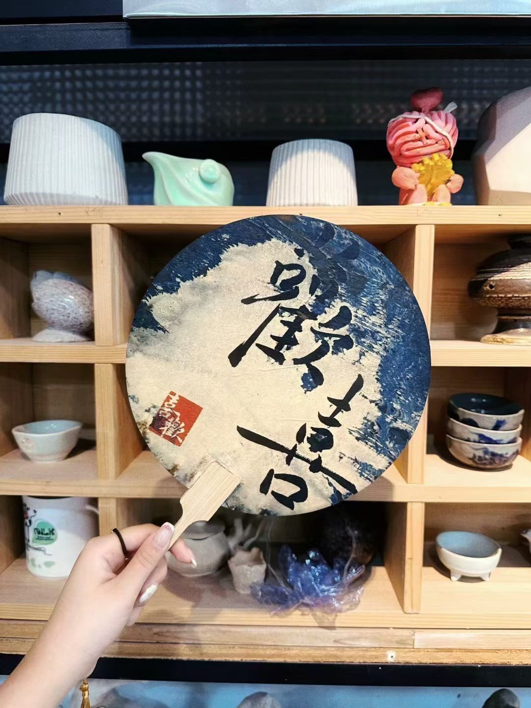 漆扇是以扇子为载体,运用漆器工艺制作而成的艺术品。以漆为纸,以扇为画,各色漆胎下沉,相互交织融合,大漆转印,创造出独一无二的纹理效果,将中国传统文化的瑰丽精致展现得淋漓尽致。