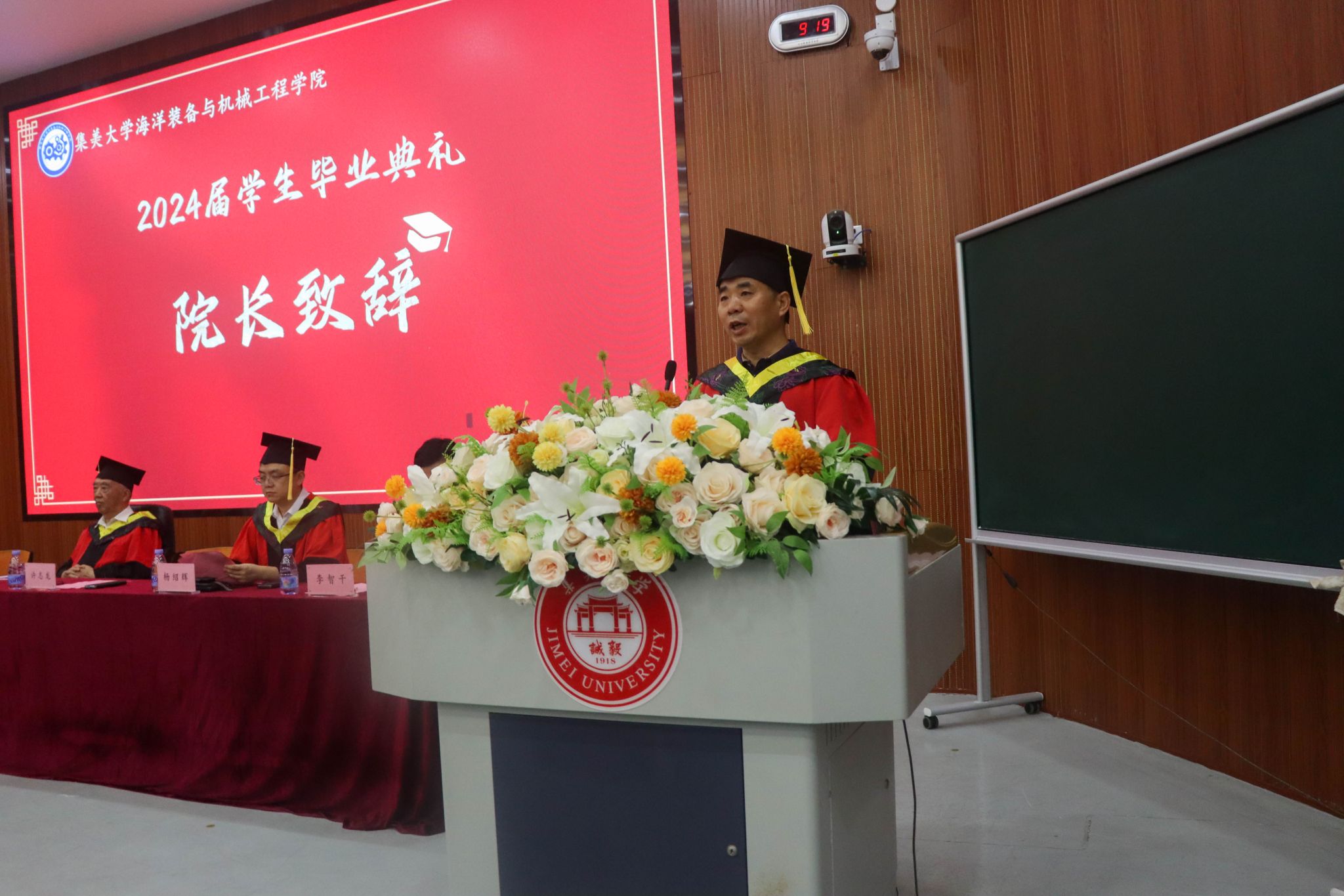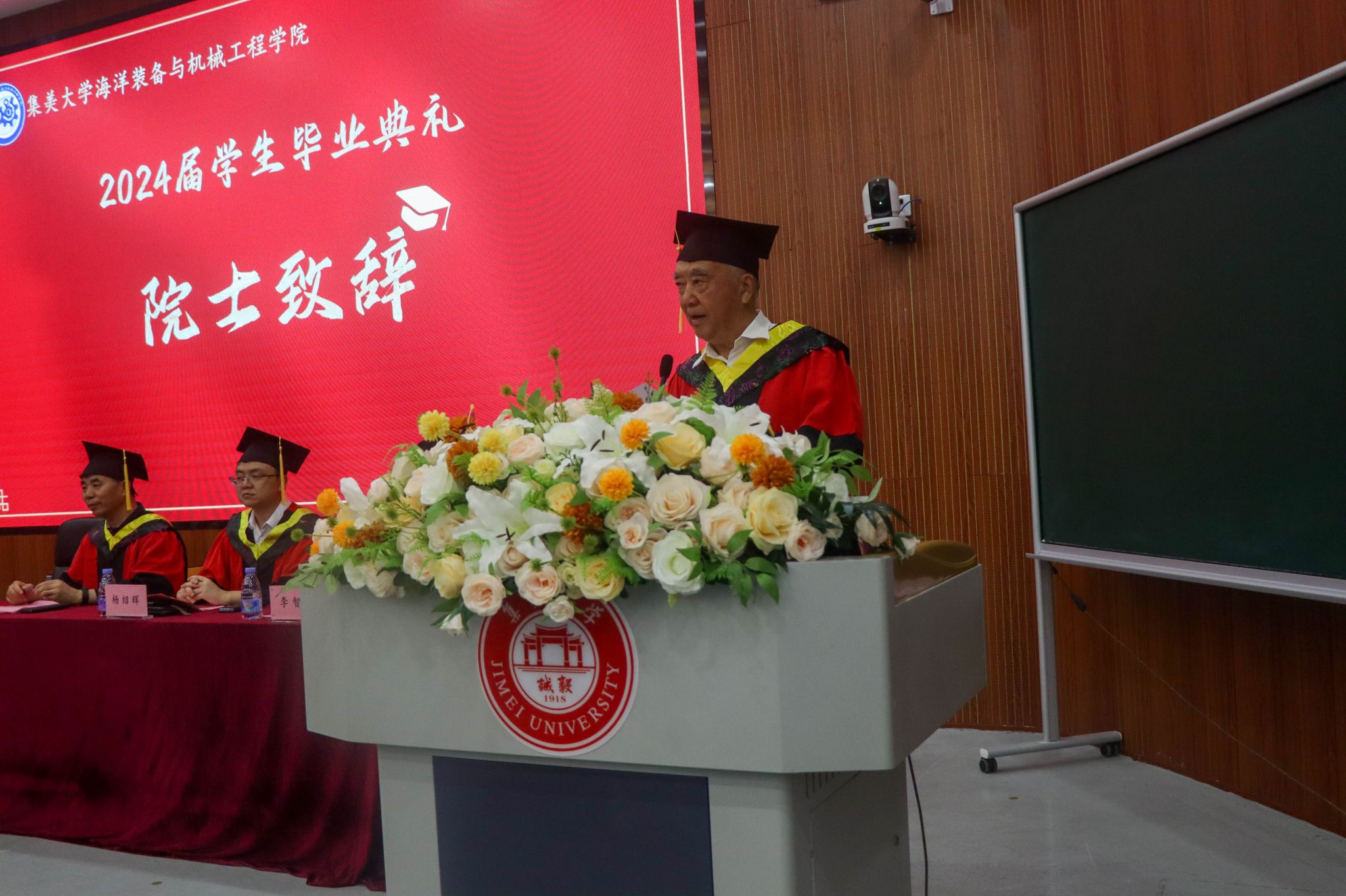 6月12日,海洋装备与机械工程学院召开2024届学生毕业典礼。中国工程院院士赵振业应邀出席并致辞。院领导班子,系主任、科室主任、教师代表、全体辅导员及2024届毕业生代表参加典礼。典礼由院党委副书记李智干主持。