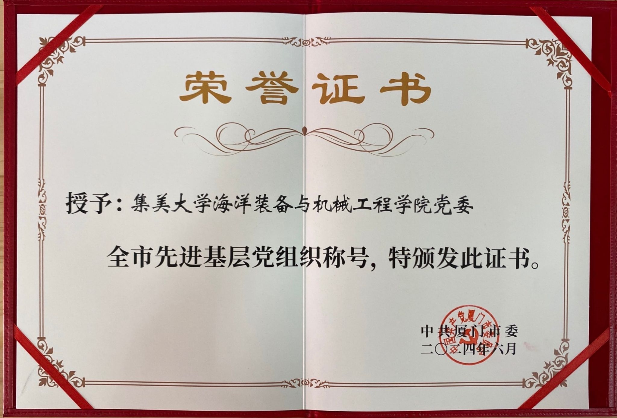 6月28日,厦门市“两优一先”表彰大会在厦门人民会堂举行,大会对全市优秀共产党员、优秀党务工作者和先进基层党组织进行表彰。海洋装备与机械工程学院获“厦门市先进基层党组织”称号,是唯一获此殊荣的高校基层党组织。学院党委书记吴连星代表学院党委接受表彰。
