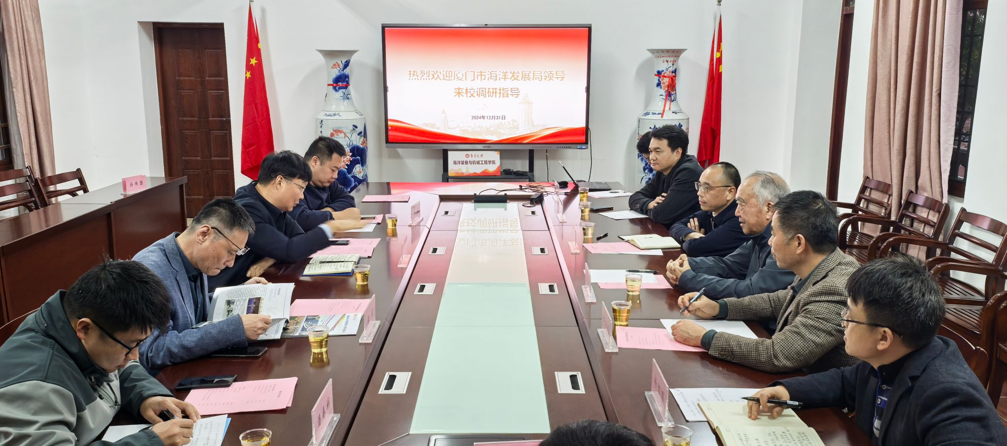 近日,厦门市海洋发展局党组成员、二级巡视员林怀远一行来我调研座谈,校长谢潮添,科研处、海洋装备与机械工程学院、诚毅学院相关负责人陪同。