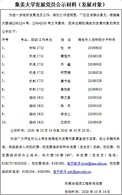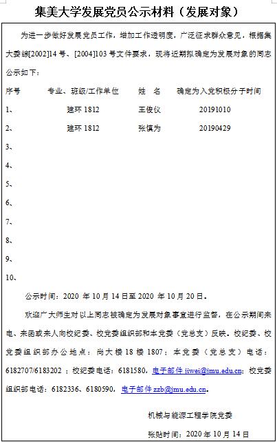 集美大学发展党员公示材料(发展对象)