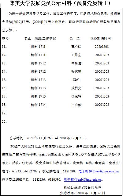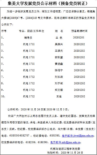 集美大学发展党员公示材料(预备党员转正)