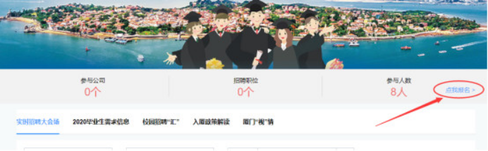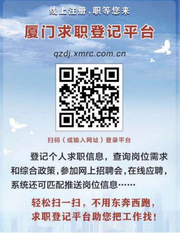 通过厦门产业企业人力资源服务平台(https://app.hrss.xm.gov.cn/xmhr)、厦门人才网(www.xmrc.com.cn)“智汇厦门·梦想起航——厦门市企业面向院校毕业生线上大招聘”专栏或直接访问网址xm.zhaopin.com进入空中双选会平台,选择【点我报名】。