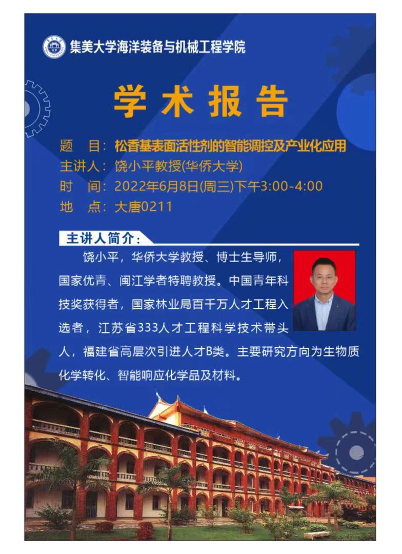 学术报告:松香基表明活性剂的智能调控及产业化应用